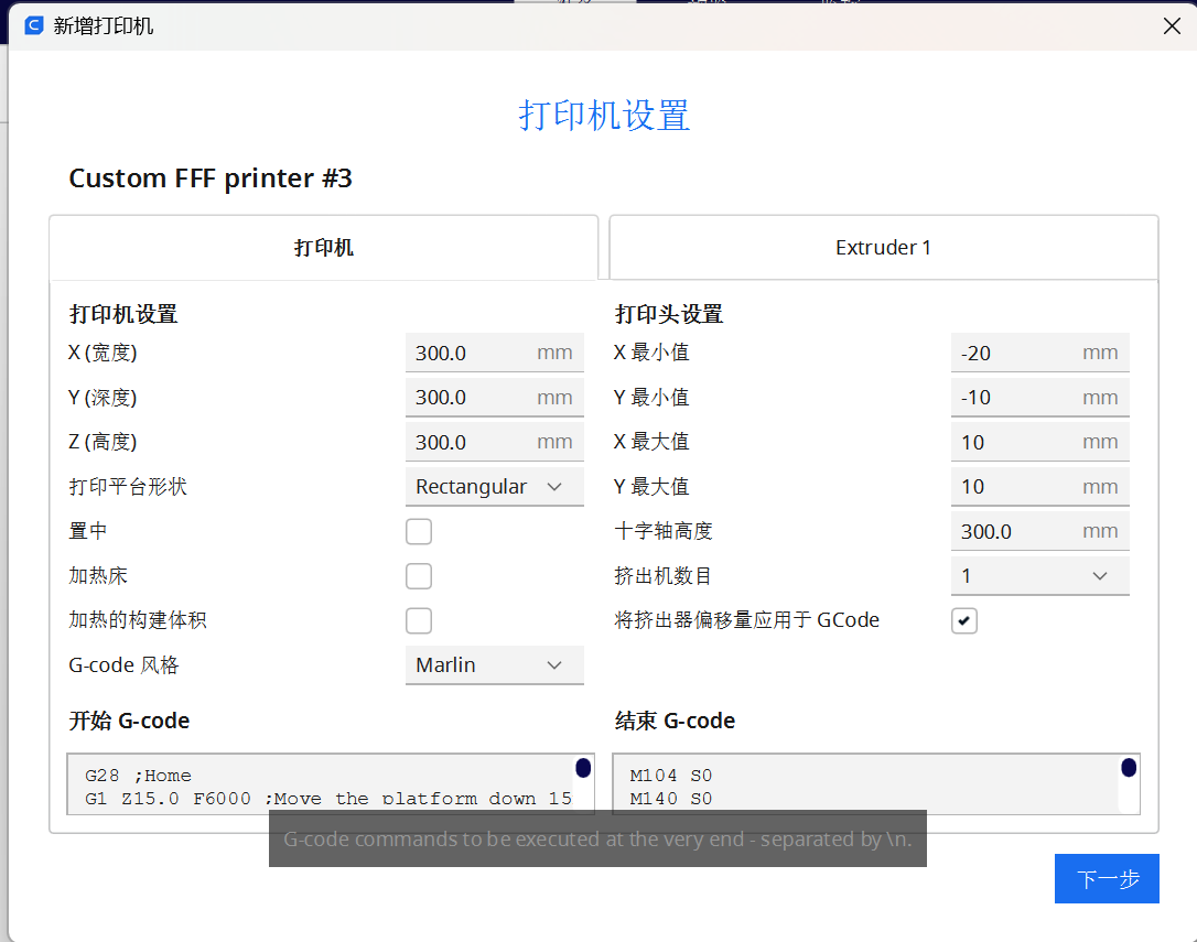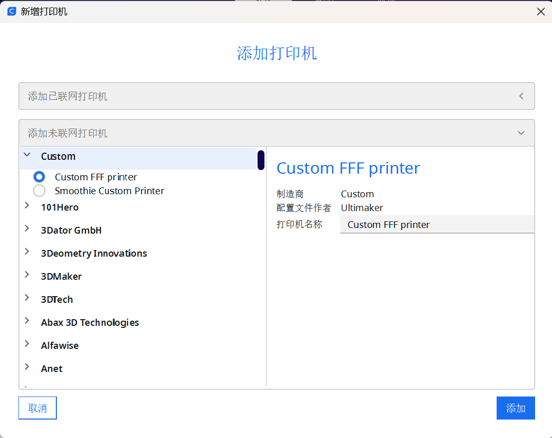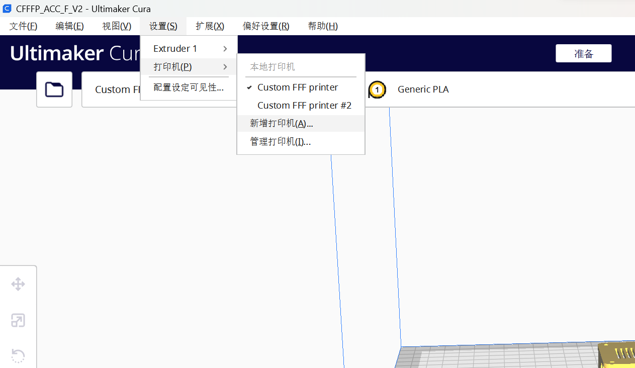 - 在custom中找到custom FFF printer