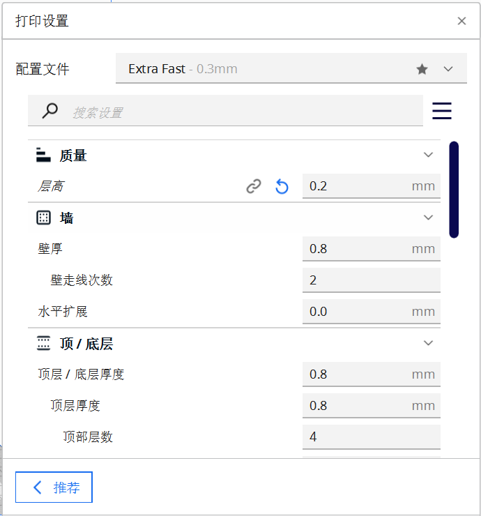 · 层高正常结构件为0.3,影响打印速度和精度